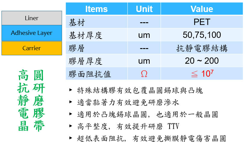 抗靜電晶圓研磨膠帶(Anti-Static Back Grinding Tape)